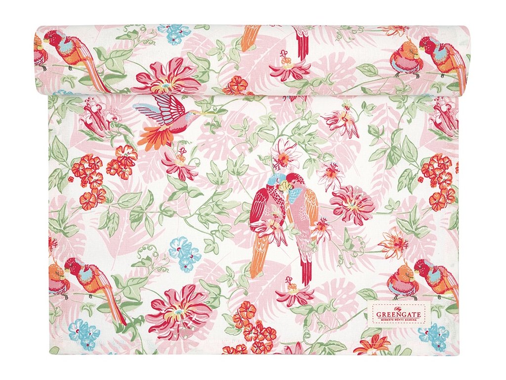 Bavlněný běhoun na stůl Fallulah White s květinami podkladu z kolekce Fallulah White dánské značky GreenGate.
