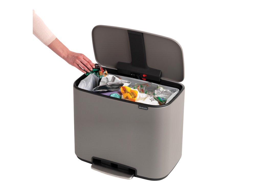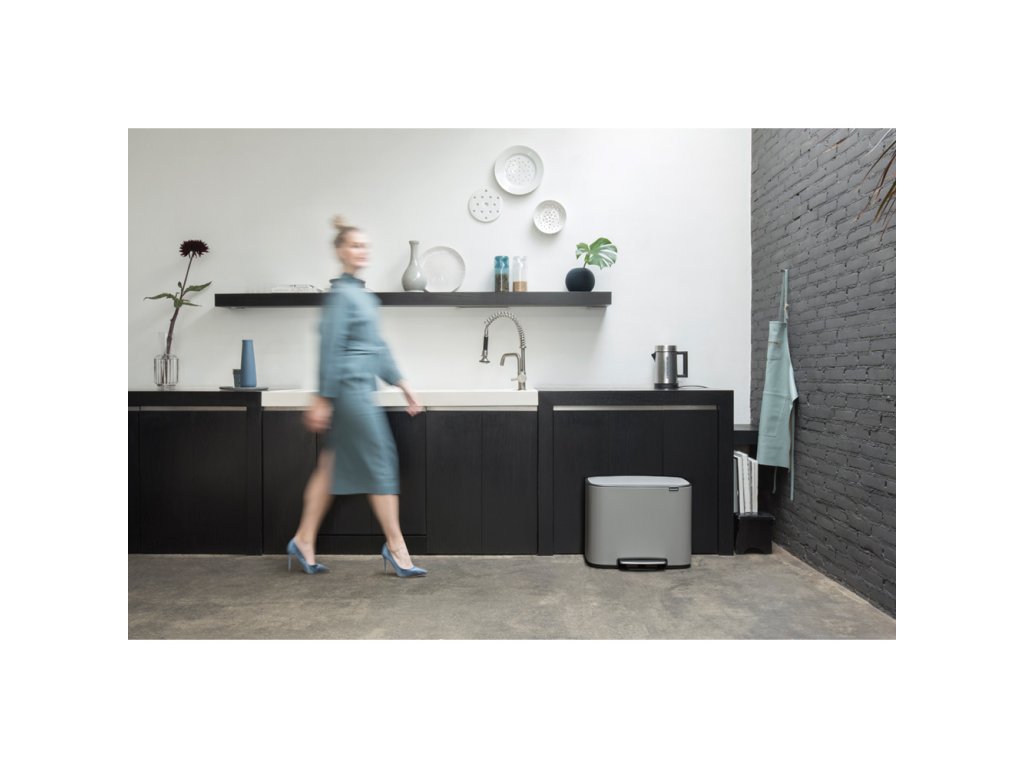 Prosím seznamte se - Bo Touch Bin - navržen pro třídění odpadu s láskou! Dokonalý a zcela inovativní design zkombinovaný se všemi funkcemi snadného třídění odpadu. Výsledek téměř 100 let zkušeností a nejmodernější technologií. Vysoce kvalitní materiály a metalická šedá barva dělají z tohoto koše Bo něco jedinečného.