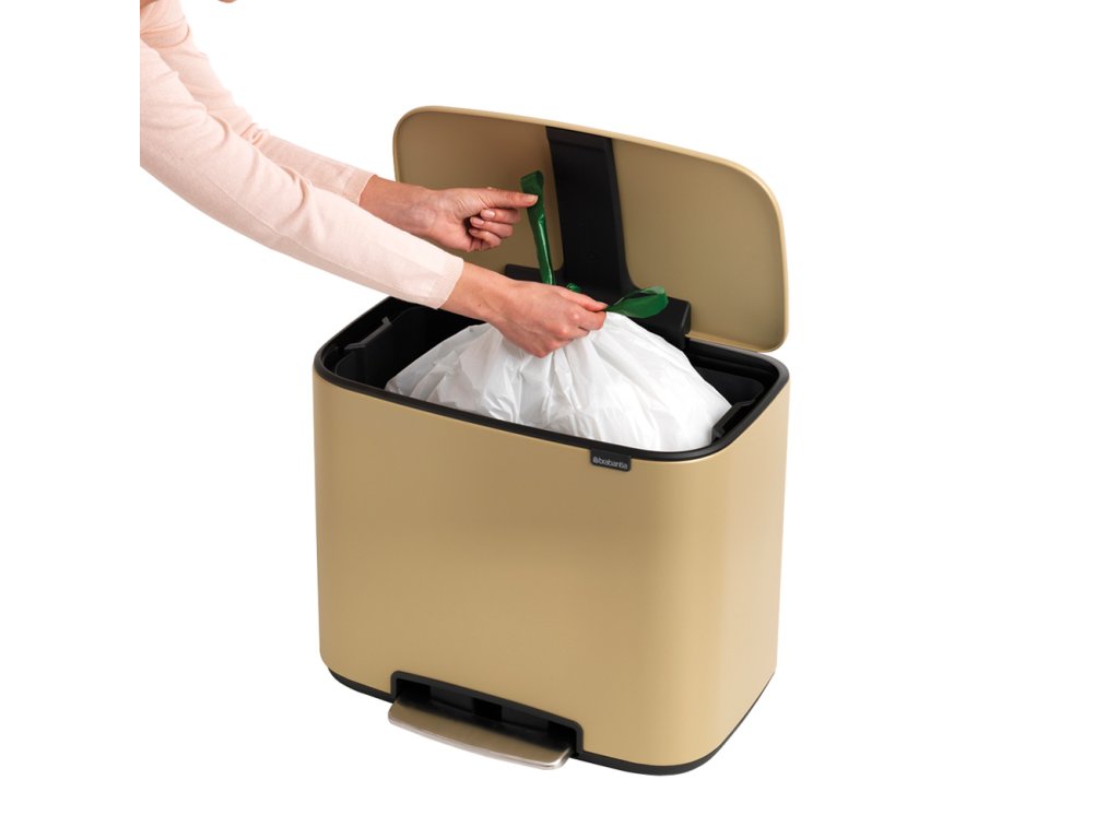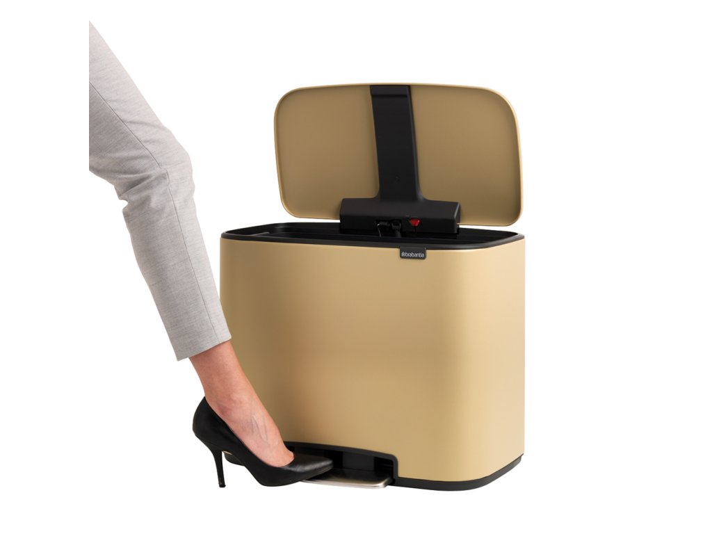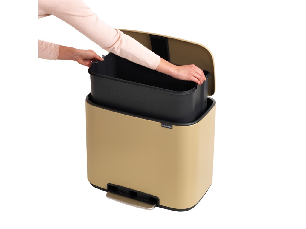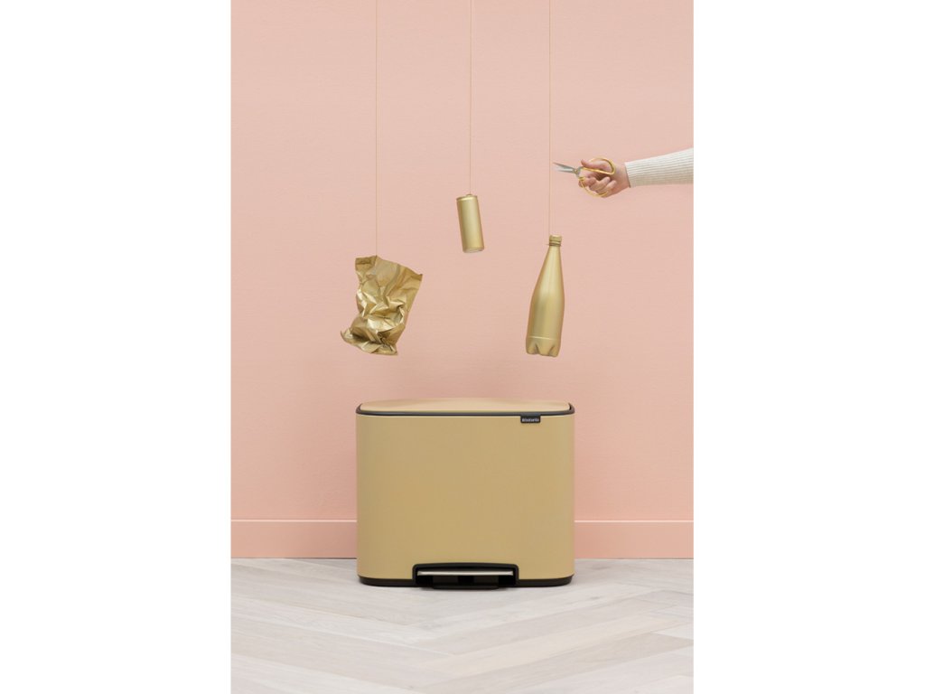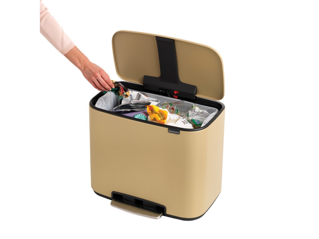 Prosím seznamte se - Bo Touch Bin - navržen pro třídění odpadu s láskou! Dokonalý a zcela inovativní design zkombinovaný se všemi funkcemi snadného třídění odpadu. Výsledek téměř 100 let zkušeností a nejmodernější technologií. Vysoce kvalitní materiály a minerální zlatá barva dělají z tohoto koše Bo něco jedinečného.