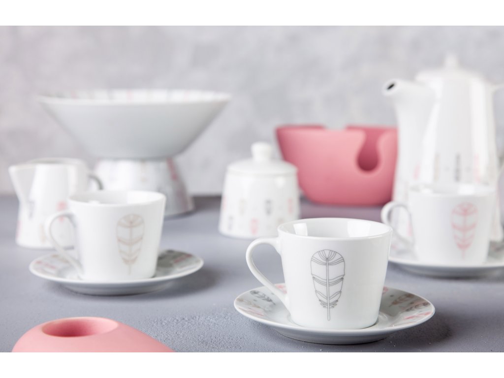 U této kolekce Vám návrháři české značky by inspire ponechali prostor pro Vaší hravost a tvořivost. Dezertní talíř, čajový hrnek a misku pro Vás máme ve dvou dekorech - pírka a symboly totemu.