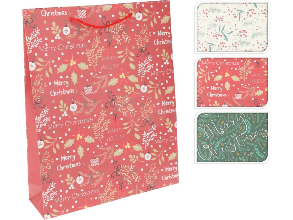 Hledáte-li střední vánoční tašku s listovým motivem, tato červená dárková taška 34x25cm je perfektní volbou pro nadcházející svátky.