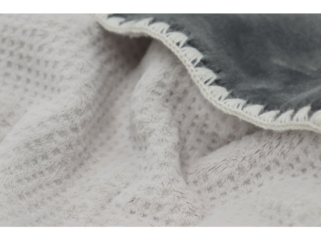 Zvláštností této deky je jemný mušlový lem, který stylově rámuje její okraje a dodává jí exkluzivní a elegantní vzhled – zkrátka skutečný poutač pozornosti.