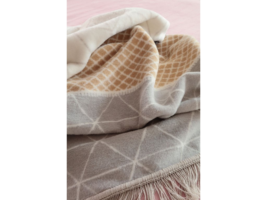 Materiál je příjemný na dotek, hřejivý, nemačká se, nepřitahuje prach a nezachytává statickou elektřinu. Navíc je minimálně 50 % vláken recyklovaných, díky čemuž deka nese certifikaci GRS (Global Recycled Standard) a OEKO-TEX Made in Green.