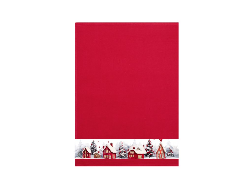 Froté ručník s potiskem vánočních domečků - Červená