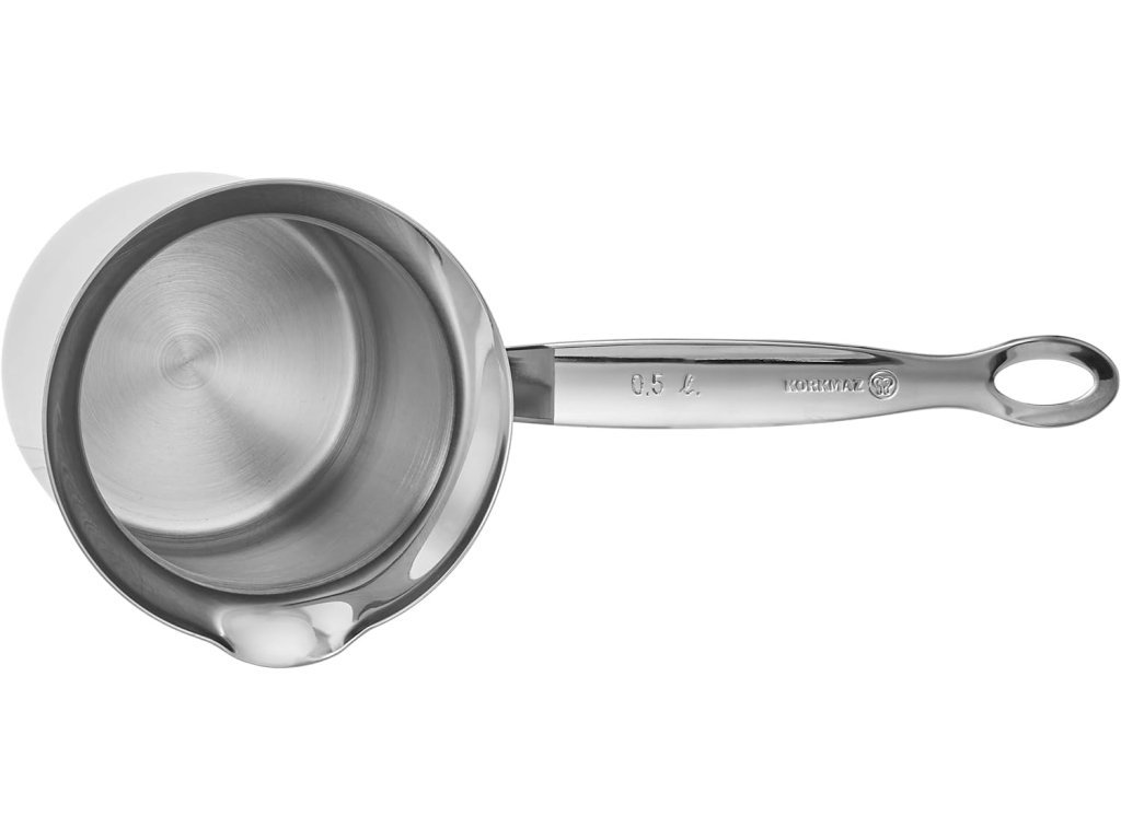 Moderní nerezová džezva je určena pro tradiční přípravu turecké kávy nebo ohřev mléka. Je vyrobena z prvotřídní nerezové oceli, leštěný povrch jí dodává elegantní vzhled. Objem 0,5 l. Snadnou manipulaci s džezvou zajišťuje praktická ergonomicky tvarovaná rukojeť. Lze ji použít na všechny typy sporáku kromě indukce. Džezva je sice magnetická, ale vzhledem k malému průměru nelze zaručit, že indukční vařič sepne. Z toho důvodu ji pro indukce nedoporučujeme.