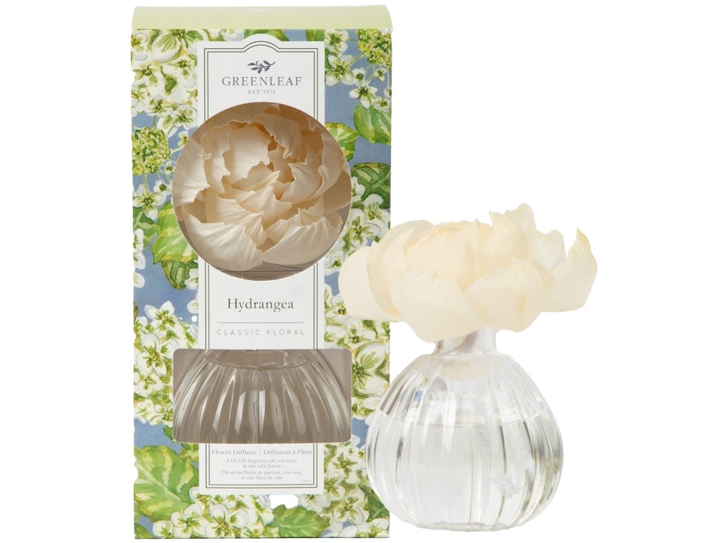 Květinový aroma difuzér Hydrangea je součástí kolekce Hydrangea oblíbené značky Greenleaf