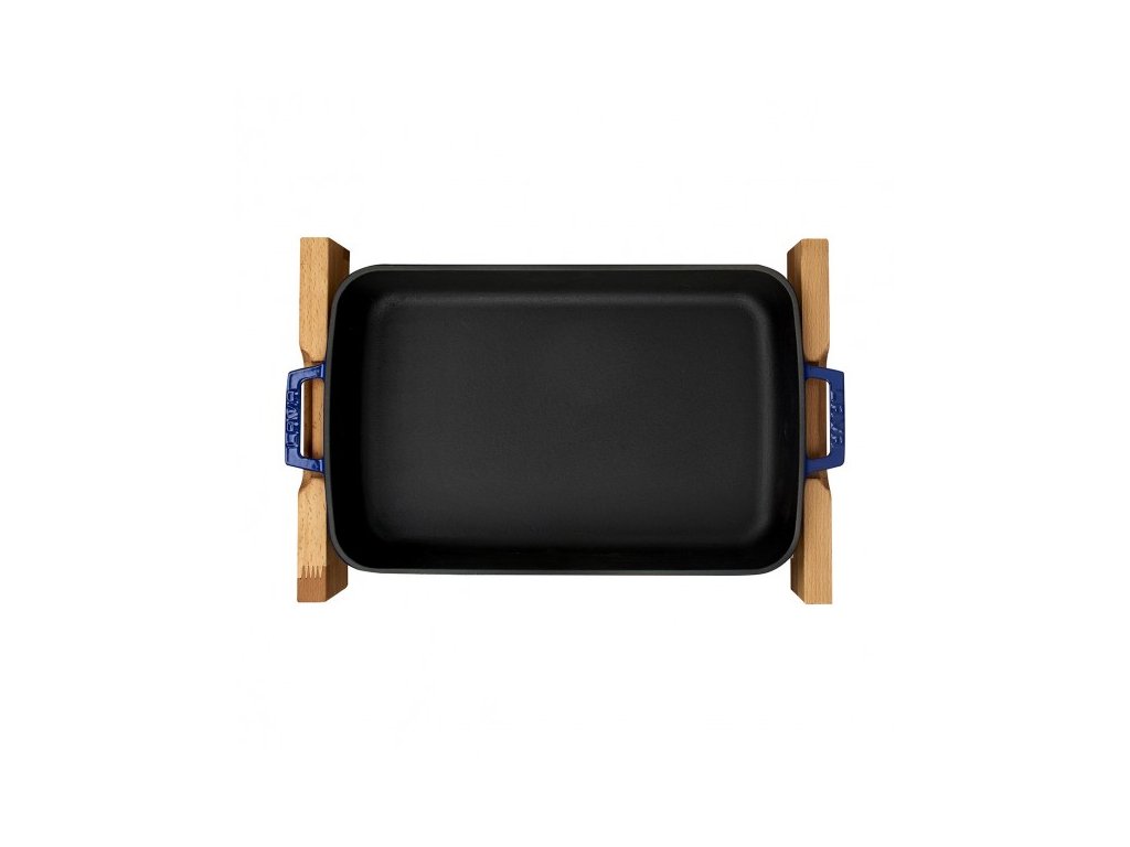 LAVA METAL Litinový pekáč 22x30cm s dřevěným podstavcem - modrý