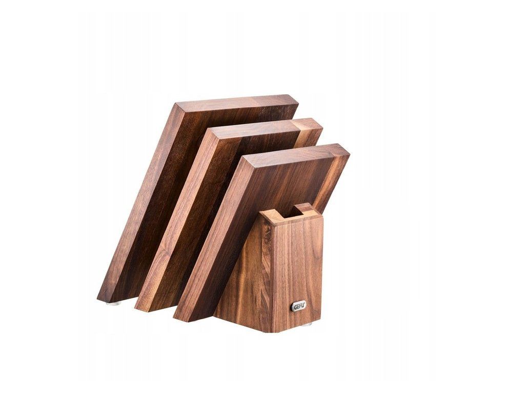 Magnetický blok na nože ENNO je funkčním a zároveň vizuálně výrazným řešením pro ukládání kuchyňských nožů. Je vyroben z vysoce kvalitního ořechového dřeva, které vyniká přirozenou kresbou, odolností a nadčasovým vzhledem. Moderní vějířovitá konstrukce vytváří dojem prostorové, sochařské formy a umožňuje snadný přístup ke všem uloženým nástrojům.