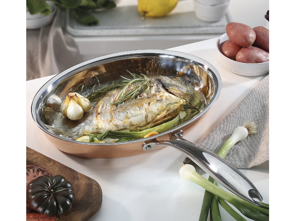 Objevte oválnou pánev CULINOX o průměru 30 cm z mědi. Ideální pro smažení a pečení, s vynikající tepelnou vodivostí a elegantním designem. Vylepšete svou kuchyň s touto funkční pánví!