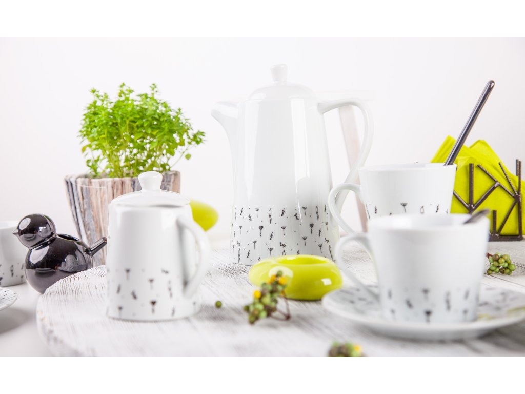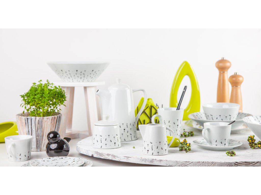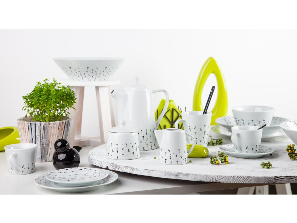 Rozeseté bylinky a malá luční kvítka na talíři či šálku. Jemný a milý motiv pro romantické duše vykouzlili designéři české rodinné firmy by inspire. I přesto, že je dekor v černé barvě, je tak jemně zpracovaný, že rozhodně nepůsobí tvrdě. Tato kolekce sluší moderním domácnostem, vyjímat se bude i na chatách a venkovských stavení.