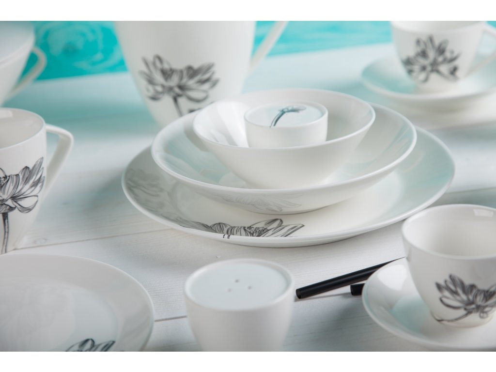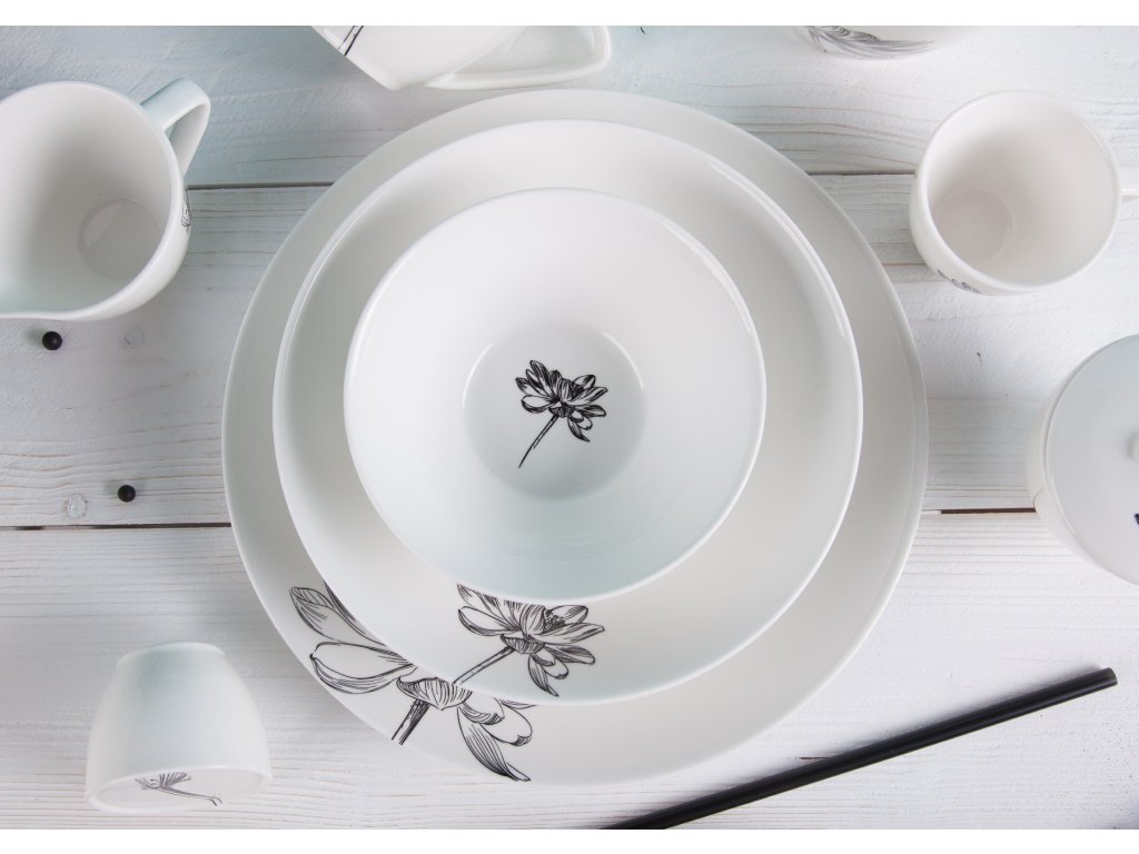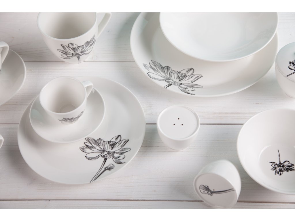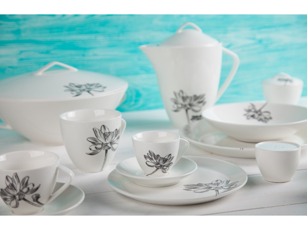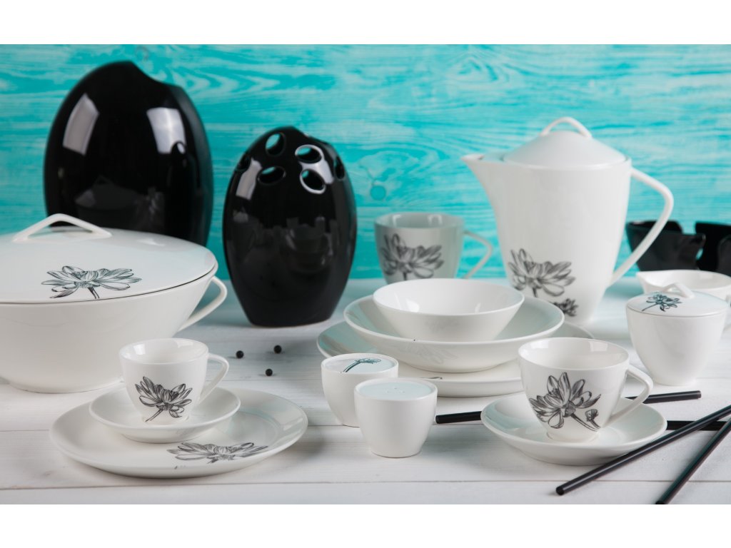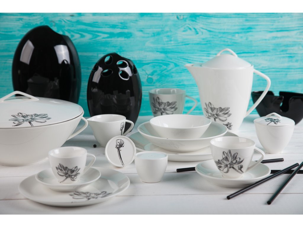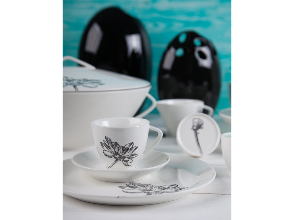 Klasika, elegance a nadčasovost. Tak lze charakterizovat tuto kolekci od české značky by inspire...porcelán s českou duší. Elegantní silueta černého květu podtržená sametově krémovou čistotou porcelánu.