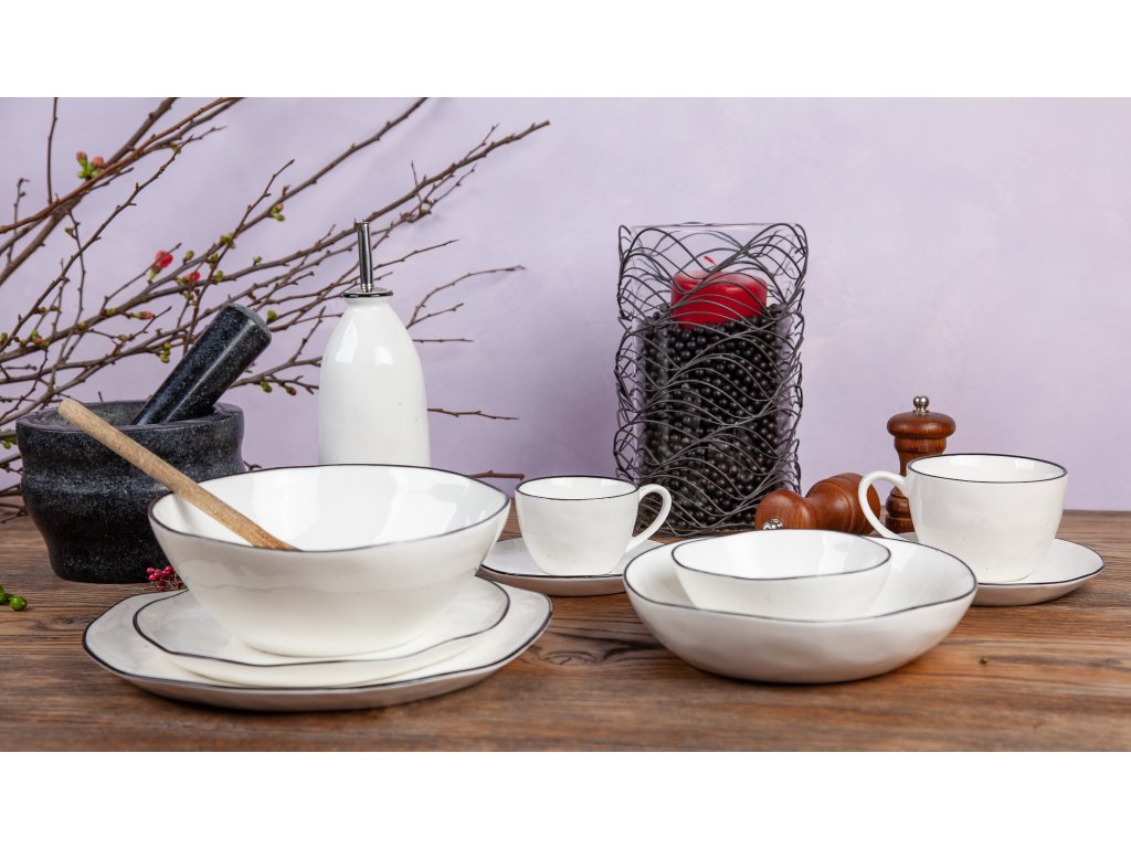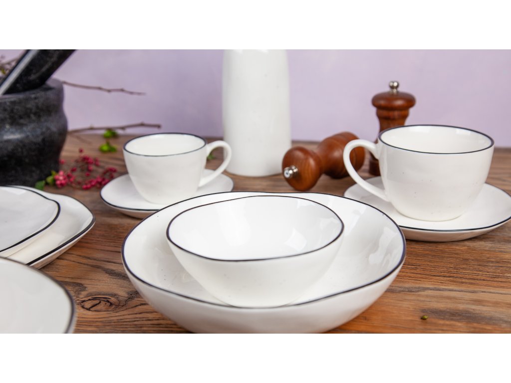Z této porcelánové kolekce Legenda Vám bude jistě chutnat. Česká značka by inspire…porcelán s českou duší přináší tak trochu jinou jídelní kolekci. Kvalitní kostní porcelán má nepravidelný tvar, jemně kropenatý povrh a černé lemovaní. Tento rádoby starý vzhled podtrhne vaši domácí kuchyni. Vytvořte si svou jedinečnou sadu talířů – mixujte s kolekcí Esence.