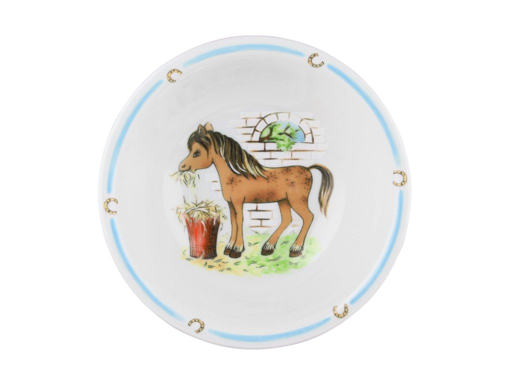 Miska na kompot s hříbětem na pastvě a symbolem štěstí - podkovou.
