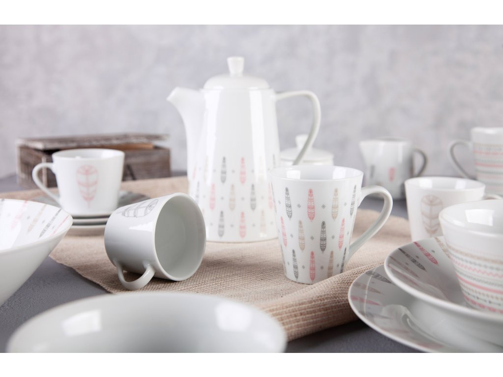 U této kolekce Vám návrháři české značky by inspire ponechali prostor pro Vaší hravost a tvořivost. Dezertní talíř, čajový hrnek a misku pro Vás máme ve dvou dekorech - pírka a symboly totemu.