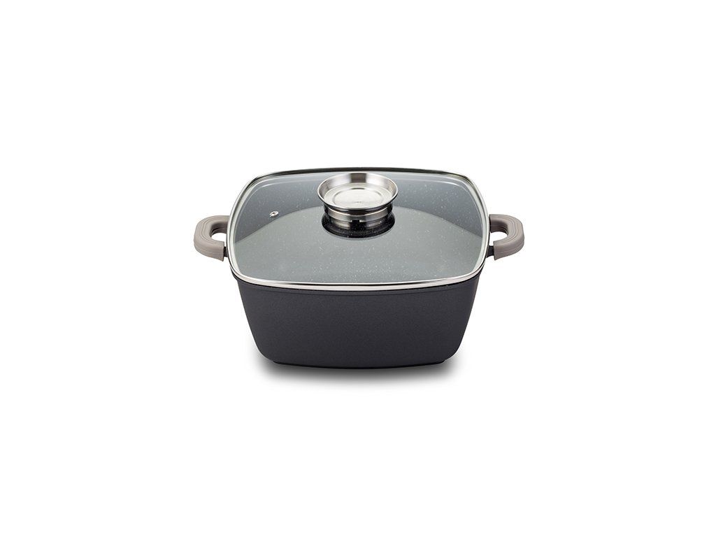 Zapékací hrnec o průměru 20 cm je ideální pro každodenní použití v kuchyni. Kombinuje kvalitu s moderním designem. Jedná se o praktický hrnec vyrobený z litého hliníku s nepřilnavým povrchem bez PFOA. Ergonomické rukojeti s odnímatelnými silikony pro příjemné a bezpečné uchopení. Součástí je poklice s odolným termo úchytem. Vynikající rozložení teploty pro dokonalou přípravu jídel. Snadno se čistí, je vhodný i do myčky na nádobí. Hrnec je vhodný i pro použití v troubě (bez úchytů). Hrnec má průměr základny 14 cm, výšku 13 cm a objem 2,6 l. Váha 1,2 kg
