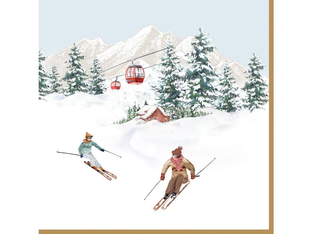 Luxusní papírové ubrousky Chalet – styl a šmrnc pro vaše stolování. Dodejte svému stolování jedinečný styl. Papírové ubrousky Chalet s motivem lyžařů na sjezdovce od italské značky EasyLife jsou ideální volbou pro každou příležitost. Elegantní design zkrášlí vaši tabuli při rodinném obědě, slavnostní večeři nebo zahradní party. Elegantní design pro každou příležitost. Motiv lyžařů na sjezdovce dodává stolování hravý a sofistikovaný nádech. Ubrousky jsou navrženy tak, aby ladily s různými dekoracemi a stolními doplňky.