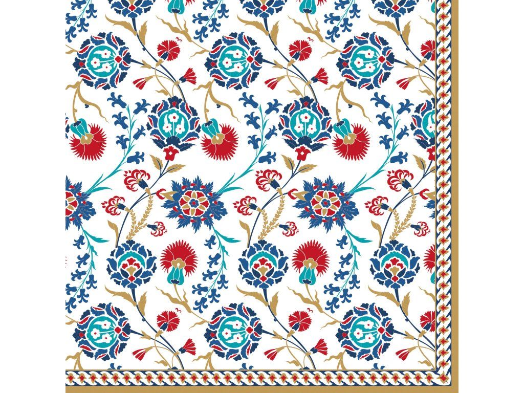 Papírový ubrousek Iznik s malovaným květinovým vzorem Vám zpříjemní každodenní čas strávený u stolu. Tento ubrousek je třívrstvý. Balení ubrousků obsahuje 20 kusů.