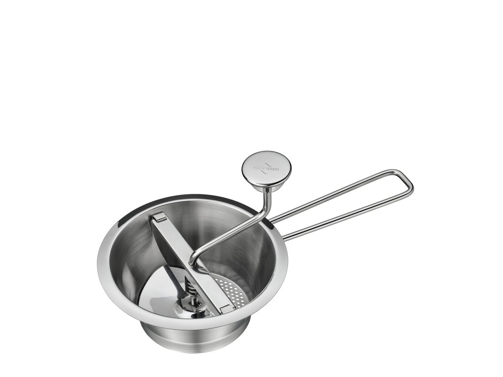 Den začíná dobře s domácí marmeládou na křupavé housce. A lahodná krémová pórková polévka zahřeje tělo i duši. Obojí můžete vykouzlit s mixérem KÜCHENPROFI. Je ideální pro malé porce a stejně důkladný jako velký spotřebič. Robustní síto rozseká vláknitou zeleninu i potraviny s tvrdou slupkou, jako jsou jablka nebo rajčata. Proč si neuvařit vlastní omáčku na těstoviny - z rajčat vyzrálých na slunci, cedníku, špetky cukru, spousty čerstvých bylinek a bez konzervačních látek. S tímto praktickým přístrojem můžete také připravovat dětskou výživu. Snadno uchopitelná klika má hladký chod a kuchyňského pomocníka můžete bezpečně držet za dostatečně dlouhou rukojeť. Robustní nerezovou ocel, která nerezaví, lze mýt v myčce nádobí.