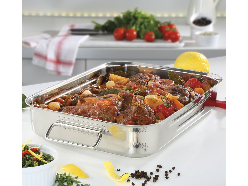 - Ergonomické rukojeti: Pohodlné a bezpečné rukojeti pro snadnou manipulaci, i když je pekáč plný.