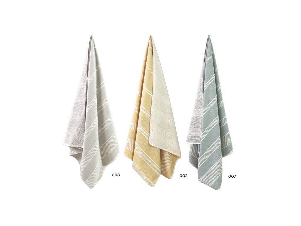 je vyrobena ze 100% kvalitní bavlny v lehkém hamam provedení. Oboustranné (double face) zpracování kombinuje hladkou tkanou stranu s jemným froté, což zajišťuje komfortní používání i dobrou savost.