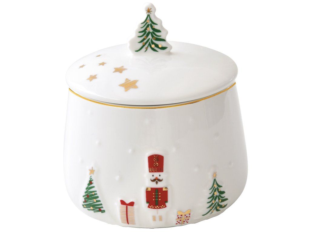 Cukřenka je vyrobena z kvalitního porcelánu s hladkou glazurou, která podtrhuje její elegantní vzhled. I když se jedná o dekorativní kousek, je plně funkční a vhodný pro každodenní použití během adventního období i vánočních svátků.