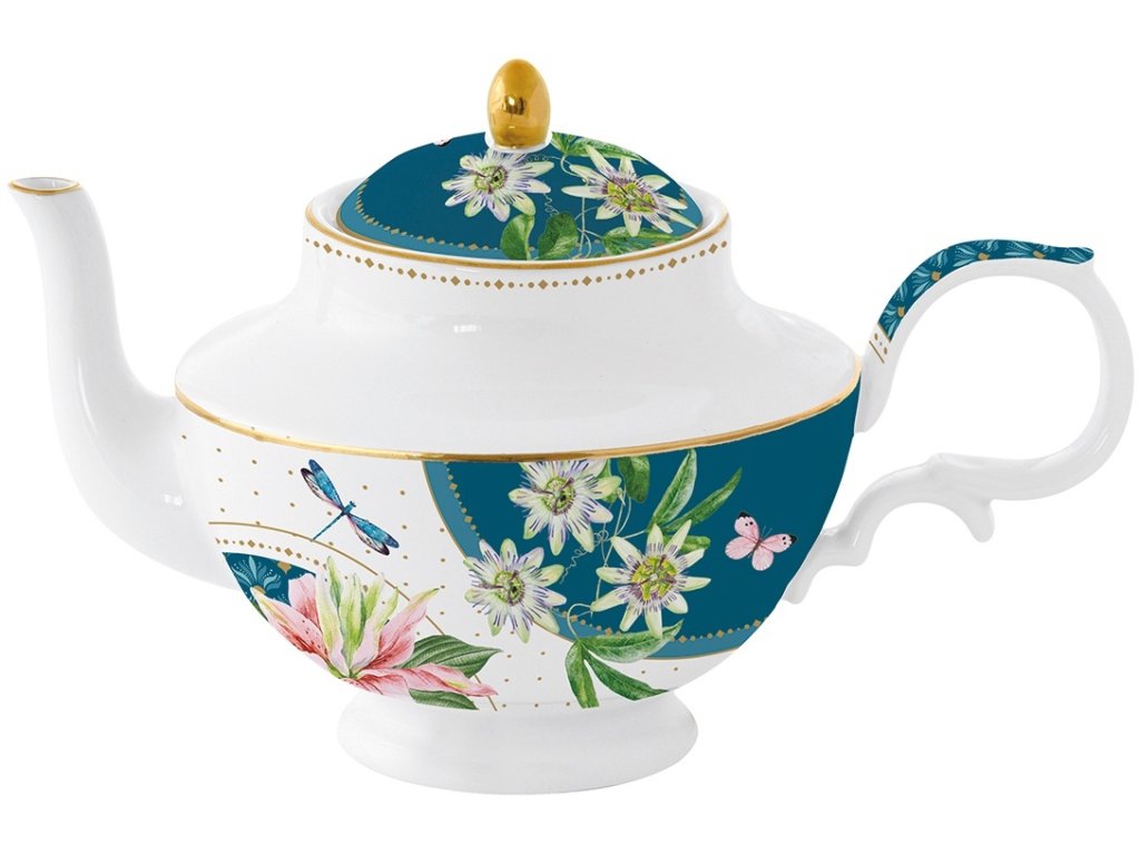 Porcelánová konev Voyage Tropical přináší dojem svěžesti a elegance díky motivu tropických květin, které zdobí jeho povrch. Zlatý lem dodává této konvi nádech luxusu a eleganci.
