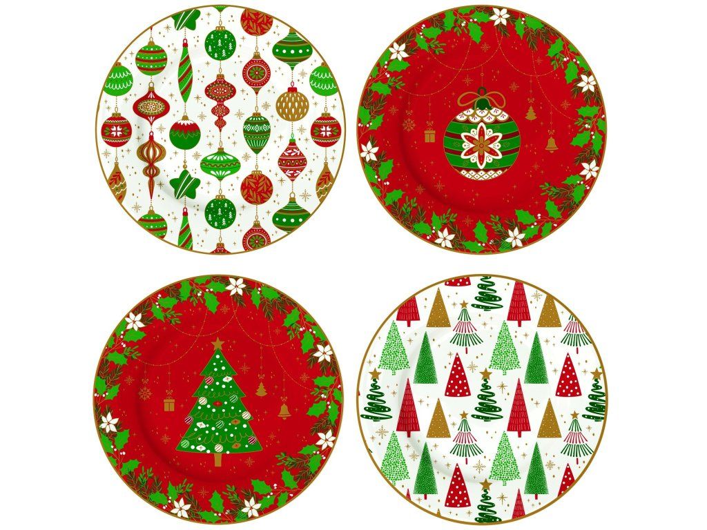 Porcelánové dezertní talíře Jingle Bells jsou baleny po čtyřech kusech v dárkové krabičce stejného vzoru.
