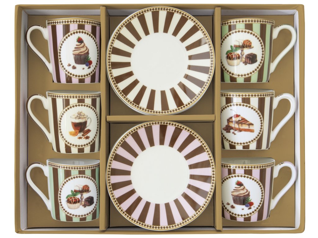 Dárková sada porcelánových šálků a podšálků na kávu Sweet Moments – čokoládové potěšení pro smysly. Objevte kouzlo dokonalého kávového rituálu s dárkovou sadou porcelánových šálků a podšálků Sweet Moments od renomované italské značky Easy Life. Tato elegantní sada s jemným motivem čokoládových bonbonů potěší každého, kdo si rád vychutná dobrou kávu nejen chuťově, ale i esteticky.Každý šálek o objemu 100 ml je ideální pro espresso, ristretto či malou cappuccino kávu. Sada obsahuje 6 šálků s odpovídajícími podšálky, zabalených v luxusní dárkové krabičce – perfektní tip na dárek pro blízké i obchodní partnery.