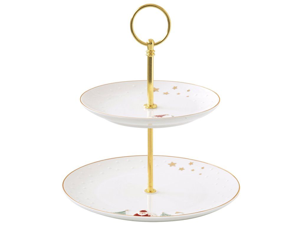 Porcelánový dvoupatrový etažér Let It Snow – Elegantní vánoční dekorace i praktický pomocník. Porcelánový dvoupatrový etažér Let It Snow od renomované italské značky Easy Life je perfektním doplňkem pro váš sváteční stůl. Spojuje elegantní design s praktickou funkcí, čímž vytváří ideální způsob, jak stylově servírovat vánoční dobroty – od sladkých dezertů až po slané jednohubky.