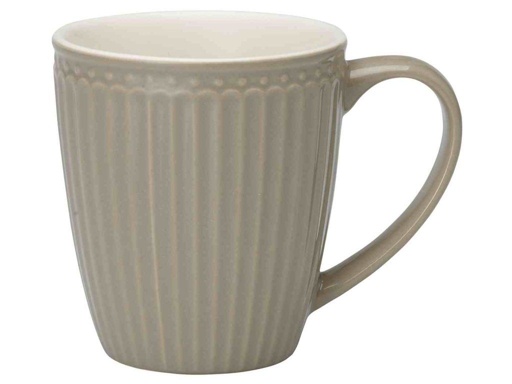 Porcelánový hrnek Alice Warm Grey je součástí kolekce Alice dánské značky GreenGate