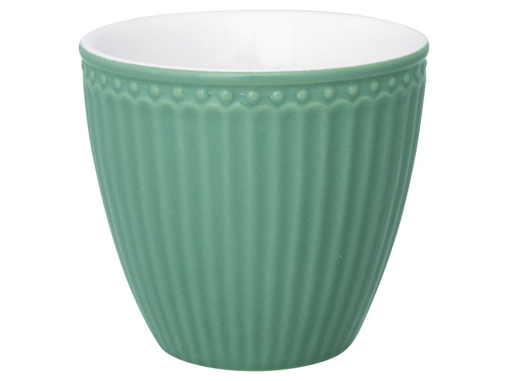 Porcelánový hrnek na latté Alice Dusty Green je součástí kolekce Alice dánské značky GreenGate