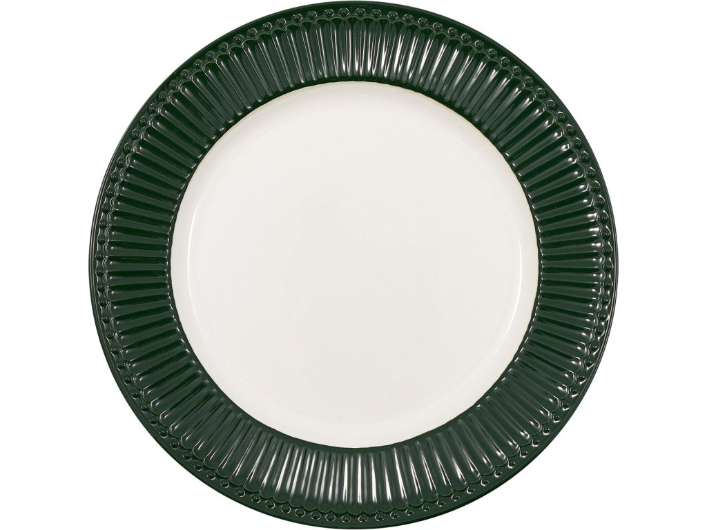 Porcelánový jídelní talíř Alice Pinewood Green je součástí kolekce Alice dánské značky GreenGate