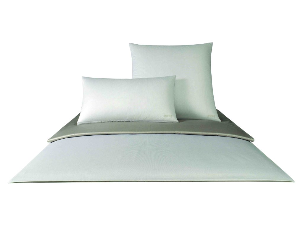 Materiál 100% bavlna v úpravě mako-satén s vyšitým logem JOOP! na polštáři i přikrývce.