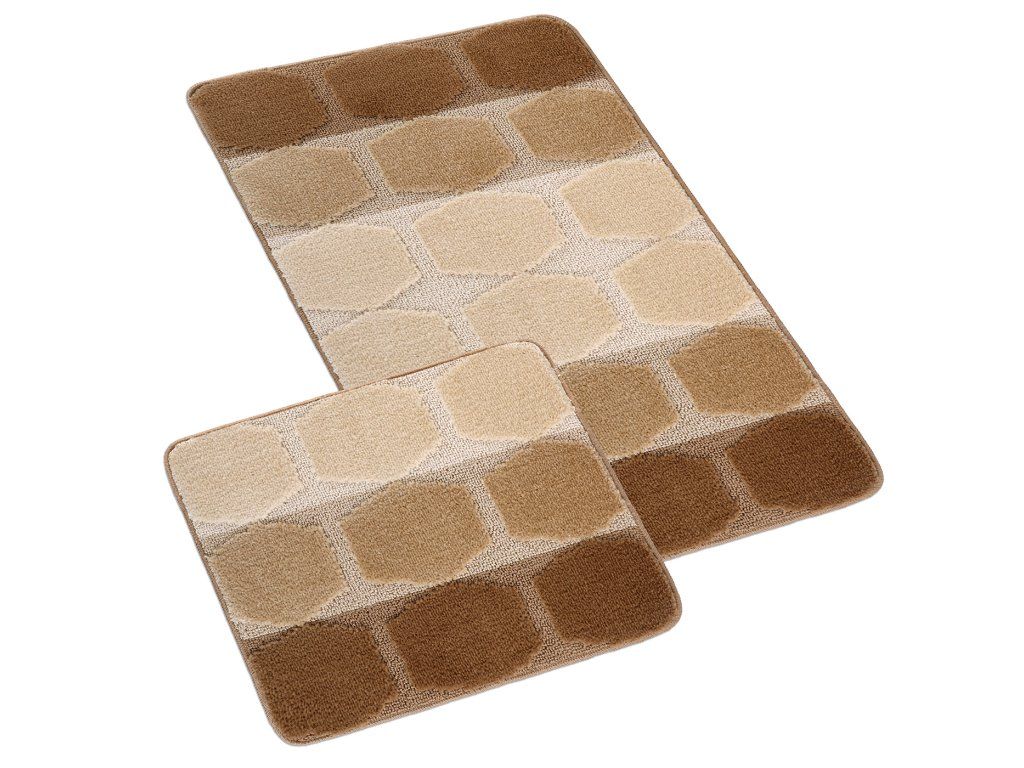 Koupelnové předložky nabízíme v mnoha barevných variacích, rozměr předložky před WC je 60x50cm, předložka je bez výkroje na WC. Možno barevně dokompletovat s předložkou před vanu 60x100cm. Rub předložek je tvořen povrchem z latexového nátěru, předložky nekloužou po koupelnové podlaze.