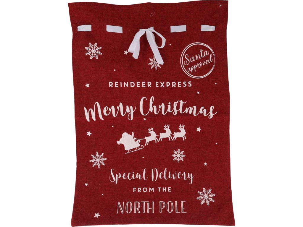 Elegantní potisk se svátečními motivy a nápisy jako „Merry Christmas“ a „Special Delivery from the North Pole“ přidává pytli jedinečný vánoční vzhled. Díky praktickému stahování na mašli je snadné pytel uzavřít a zajistit obsah uvnitř. Tento vánoční pytel je nejen dekorativní, ale také opakovaně použitelný, což přispívá k udržitelnosti a menšímu odpadu během svátků.