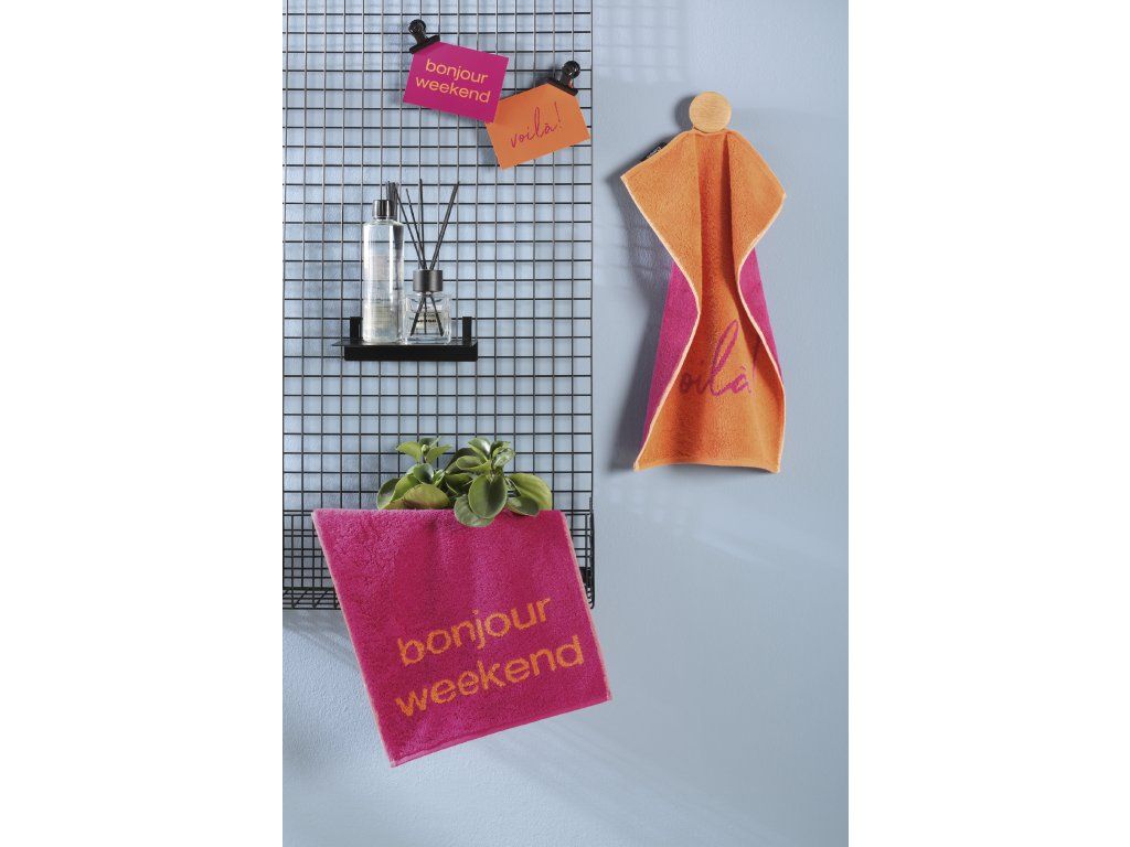 Ručník je ideální jako designový detail do koupelny či toalety a zároveň jako milý dárek s pozitivním sdělením. Spojuje funkčnost, kvalitu a atmosféru, která navodí pocit klidu a víkendové pohody.