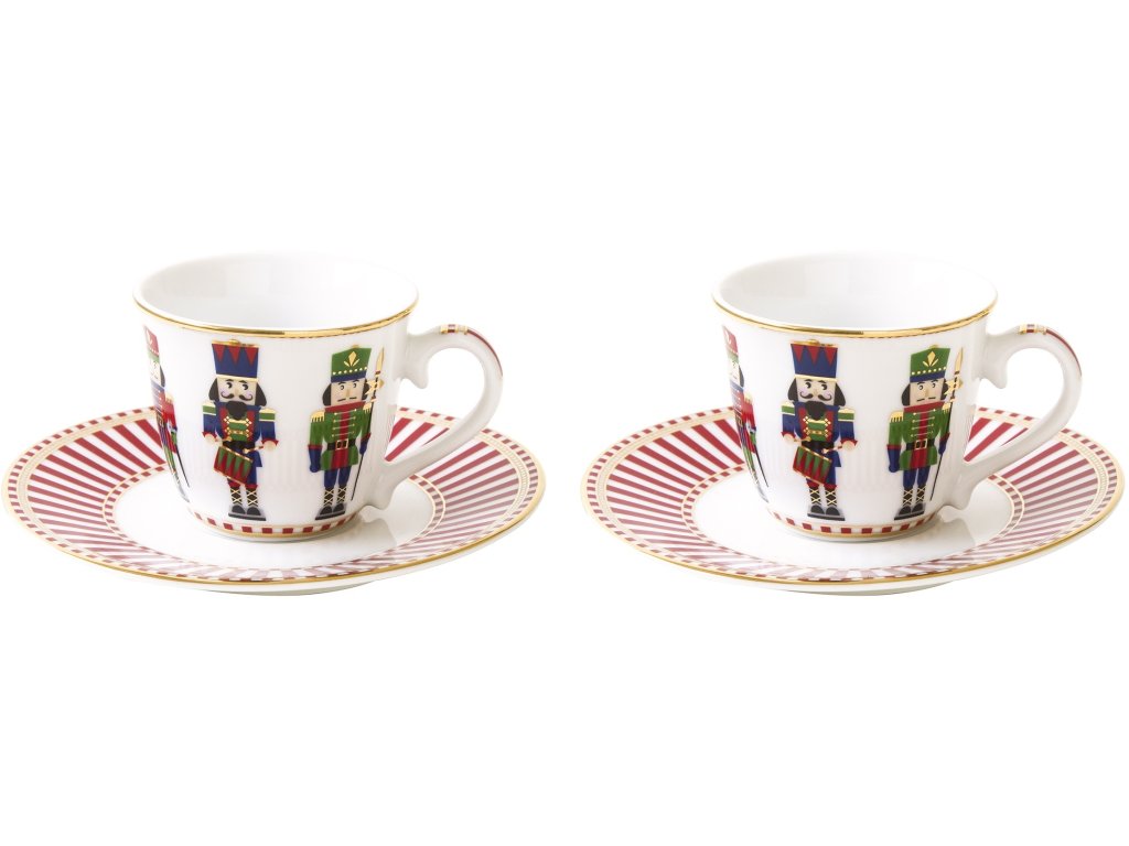 Sada dvou porcelánový šálků a podšálků Nutcracker