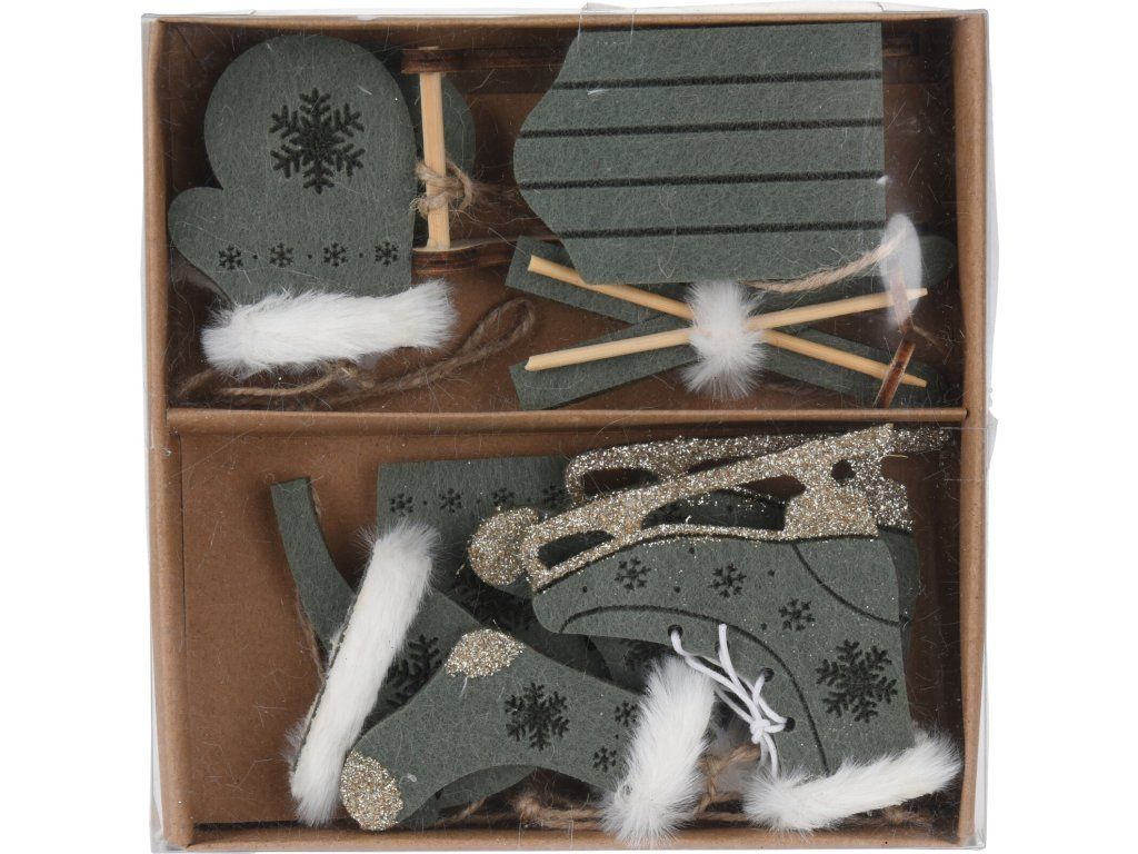 Sada vánočních dekorací 10ks, zelená, textil, dřevo