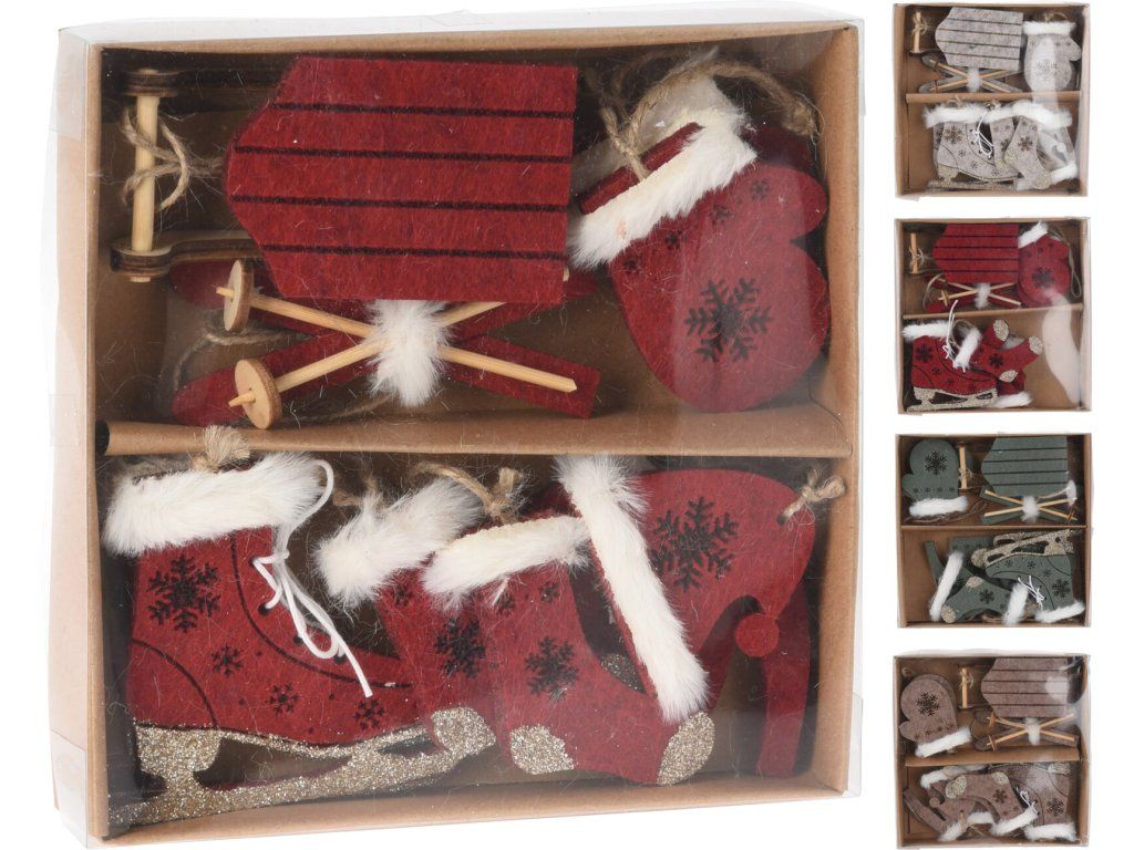 Souprava vánoční filcových dekorací k zavěšení a položení v dřevěné krabičce.