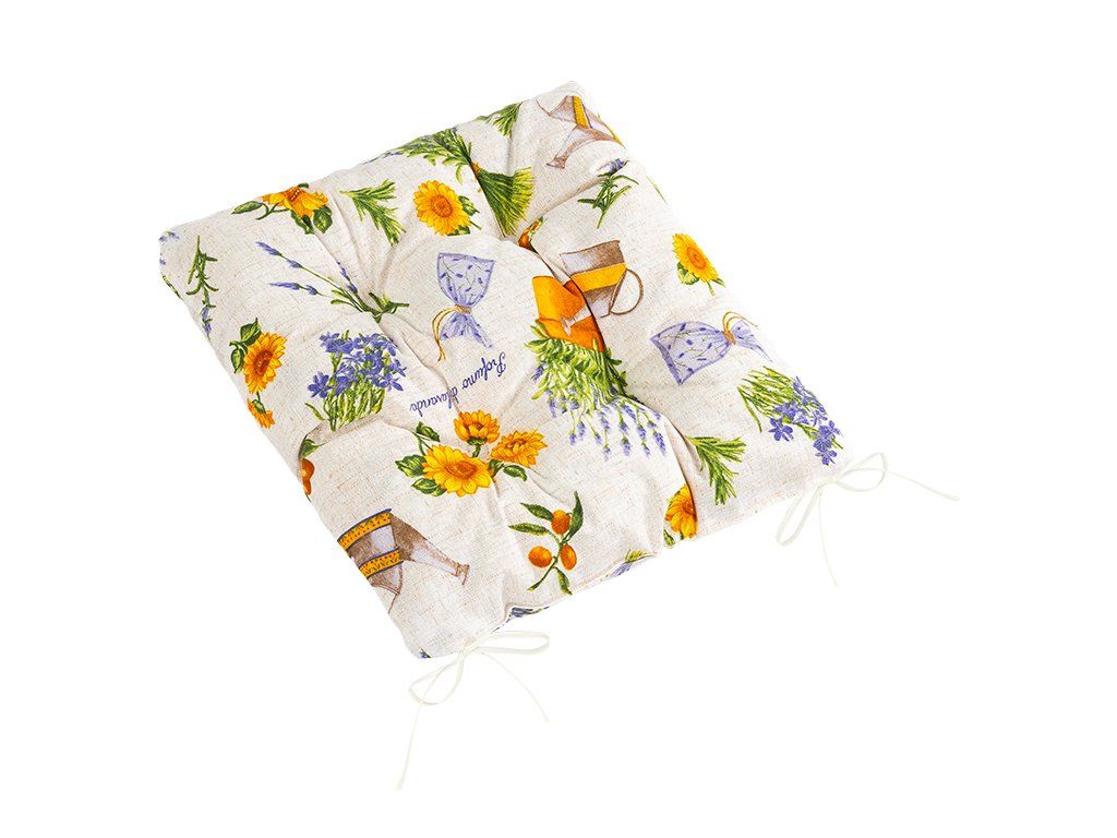Sedák je ušit z kvalitního materiálu, odolného vůči prosezení. Na Vaší židli v kuchyni bude skvěle vynikat s ubrusem ve stejném vzoru a stane se Vaším oblíbeným doplňkem. Skvěle poslouží i jako praktický doplněk k zahradnímu posezení.