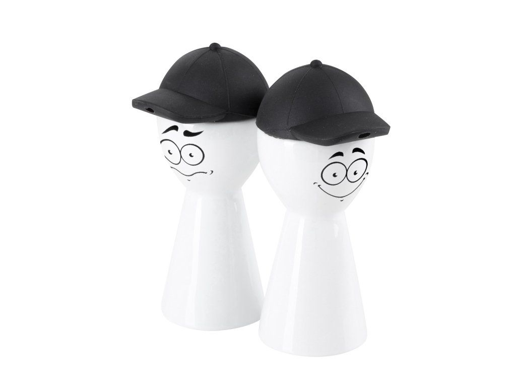 Nádoby na olej a ocet mají porcelánové tělo a silikonové víko v černé barvě. Silikonové víko je vyrobeno ve tvaru kšiltovky. A tak jsme nádobám vytvořili obličeje. Vznikla tak vtipná a hravá minikolekce Face.