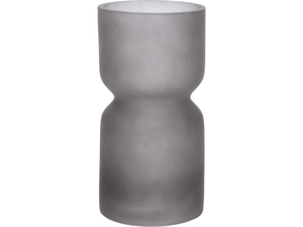Šedá skleněná váza ve tvaru válce v matném provedení s povrchovou úpravou Frost. Neobvyklá jemná transparentní šedá barva působí jemně a útulně.