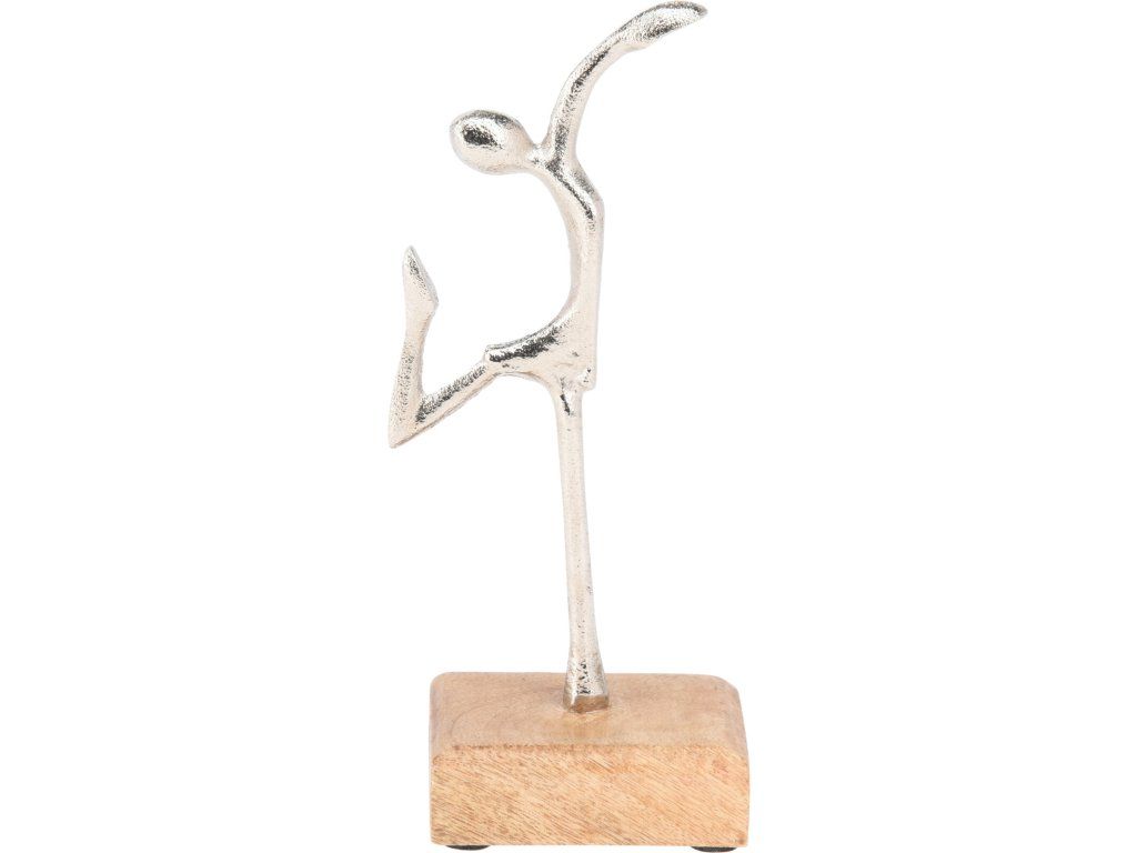 Soška tančící postavy na dřevěném podkladu je elegantním a moderním dekorativním prvkem, který dodá vašemu interiéru styl a dynamiku. Vyrobena z lesklého stříbrného hliníku a mango dřeva, tato soška v taneční pozici A přináší do prostoru nádech pohybu a elegance. Její rozměry 85x60x210 mm ji činí ideální dekorací pro různé povrchy, ať už jde o poličky, komody nebo pracovní stoly.