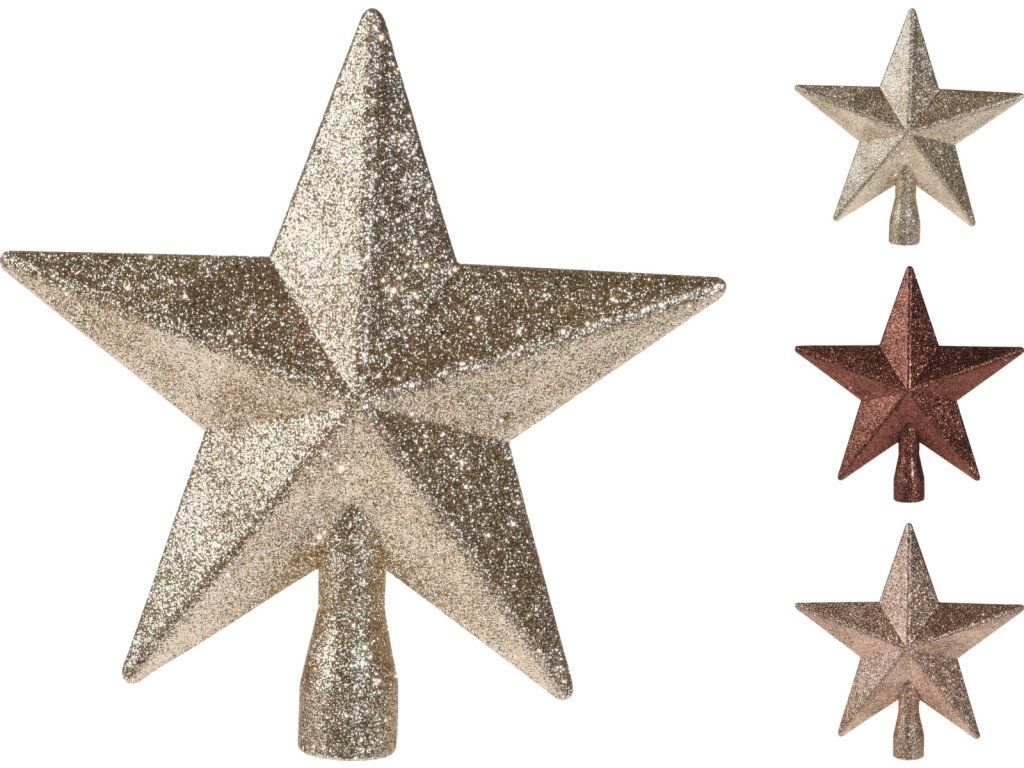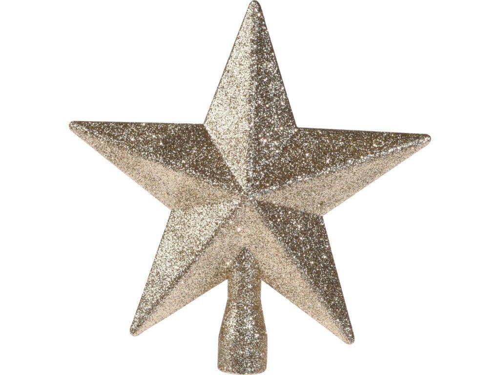 Třpytivá hvězda jako špička na vánoční stromek ve zlaté barvě, velikost 20x20x5cm.