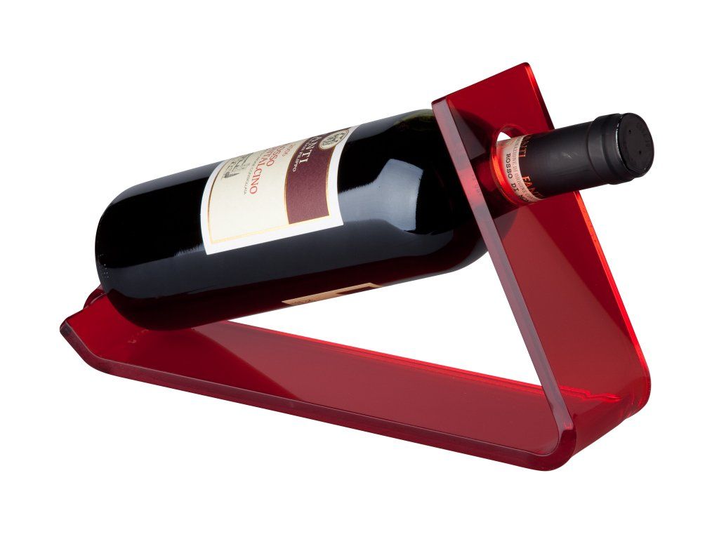 Stojan na víno z kvalitního akrylu v transparentní červené barvě.