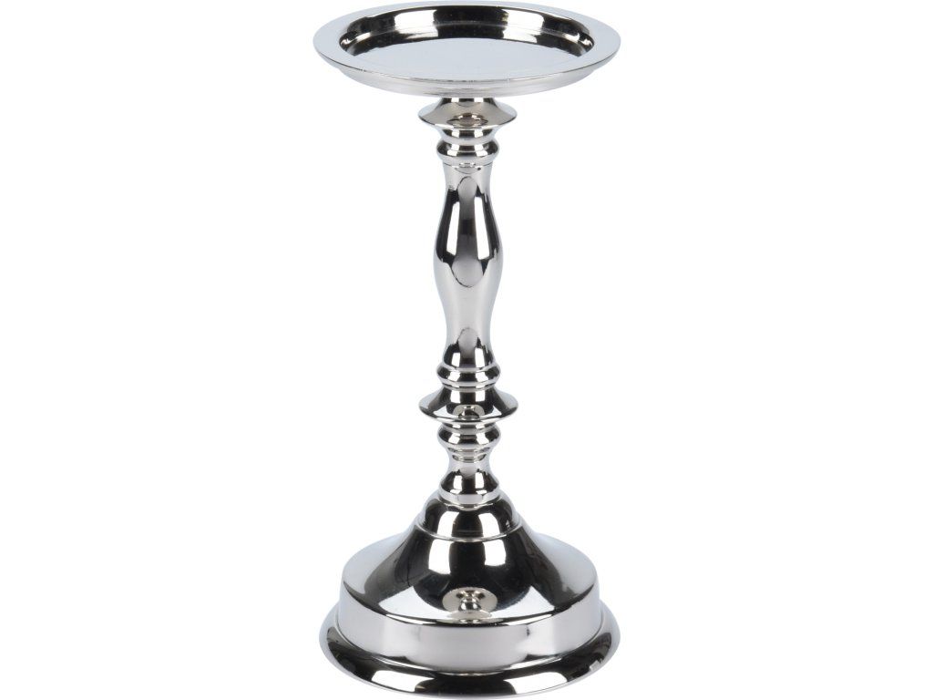 Stříbrný svícen Lock o výšce 21,5 cm je elegantním doplňkem každého interiéru. Vyrobený z kvalitního hliníku, tento kovový svícen je určen pro válcovou svíčku, kterou bezpečně uchytí a vytvoří tak působivou atmosféru ve vašem domově. Jeho stříbrný lesklý povrch dodává nádech luxusu a stylu, ať už ho umístíte na slavnostní stůl, poličku či komodu.