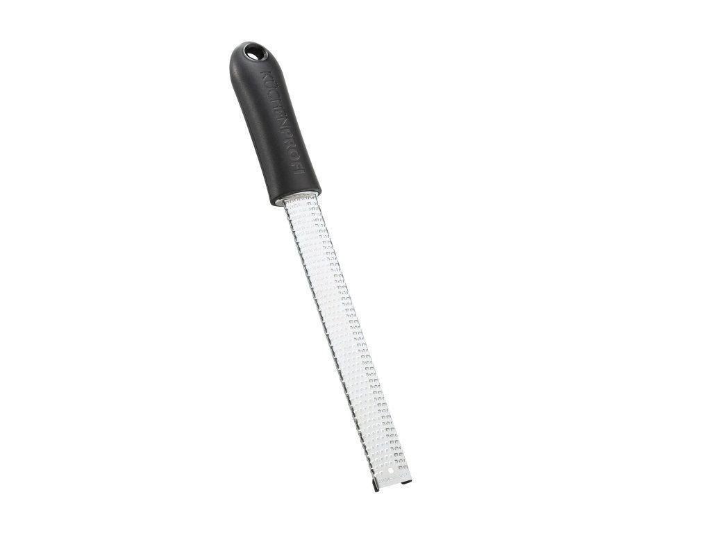 Krájecí výkon. Struhadla MASTER GRIP od společnosti KÜCHENPROFI ostrá jako břitva poskytují dokonalé výsledky bez námahy. To je možné díky propracované technice fotoleptání, která struhadlům dodává extrémní ostrost. Robustní nerezová ocel se setkává s ergonomickou rukojetí s měkkým povrchem; bezpečnou manipulaci a maximální kontrolu zajišťují také protiskluzové nožičky a kryt čepele. Jemné struhadlo na kůru strouhá citrusové plody a kousky čokolády.