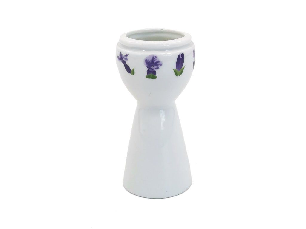 Keramický bílý svícen na jednu svíčku ve tvaru menšího válce s motivem levandule.