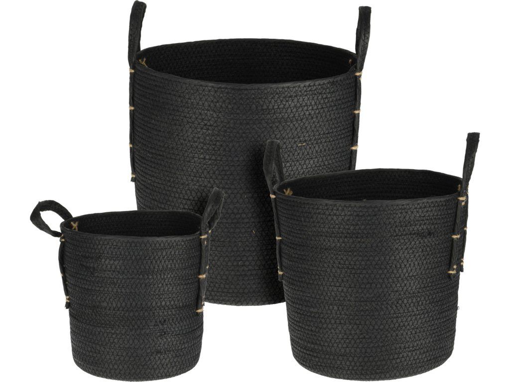 Úložný koš Handle, set 3ks, tkaný papír, černá