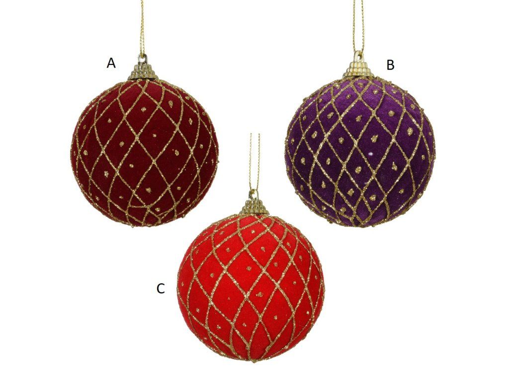 Vánoční ozdoba, 8 cm, samet, 3 druhy, KSD